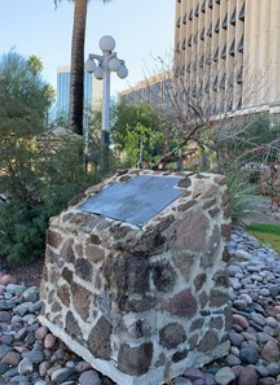 Head west along Alameda Street (to your left). Sunset Park, behind Tucson City Hall, is home to several monuments, including the next marker on the tour. Along the sidewalk, before you get to Main Avenue, you can see the marker on your left.